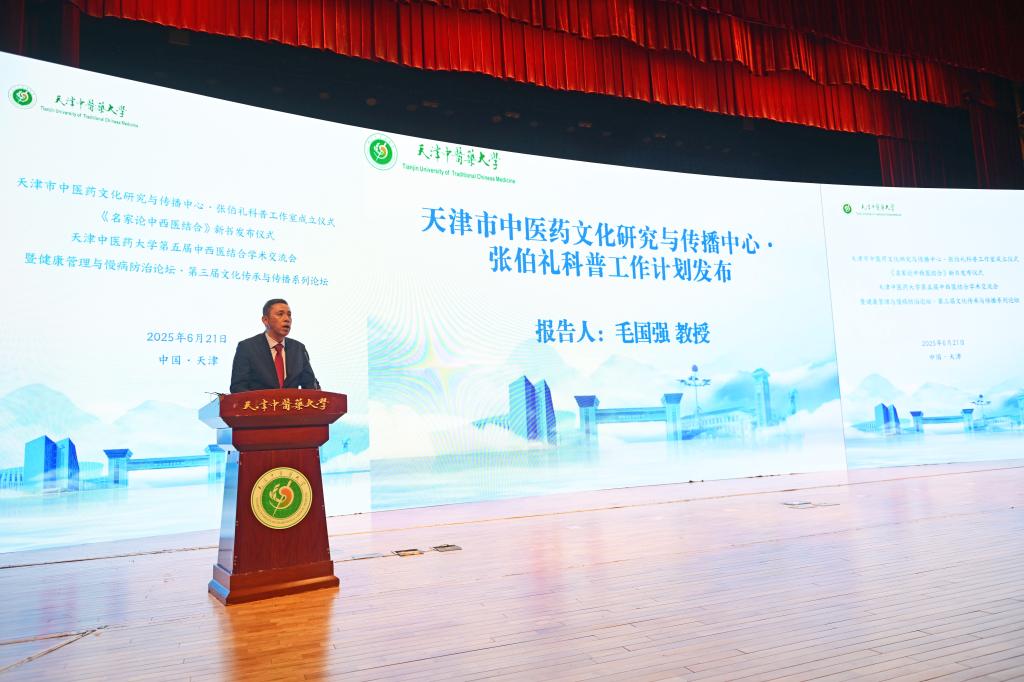 在21日举行的天津市中医药文化研究与传播中心·张伯礼科普工作室成立仪式上,天津市中医药文化研究与传播中心主任、天津中医药大学文化与健康传播学院院长毛国强教授代表张伯礼工作室发布了2025-2026年度工作计划。