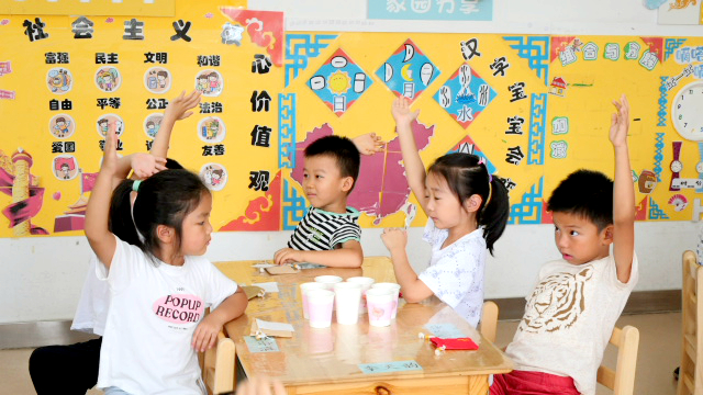 孩子们在课堂上踊跃举手