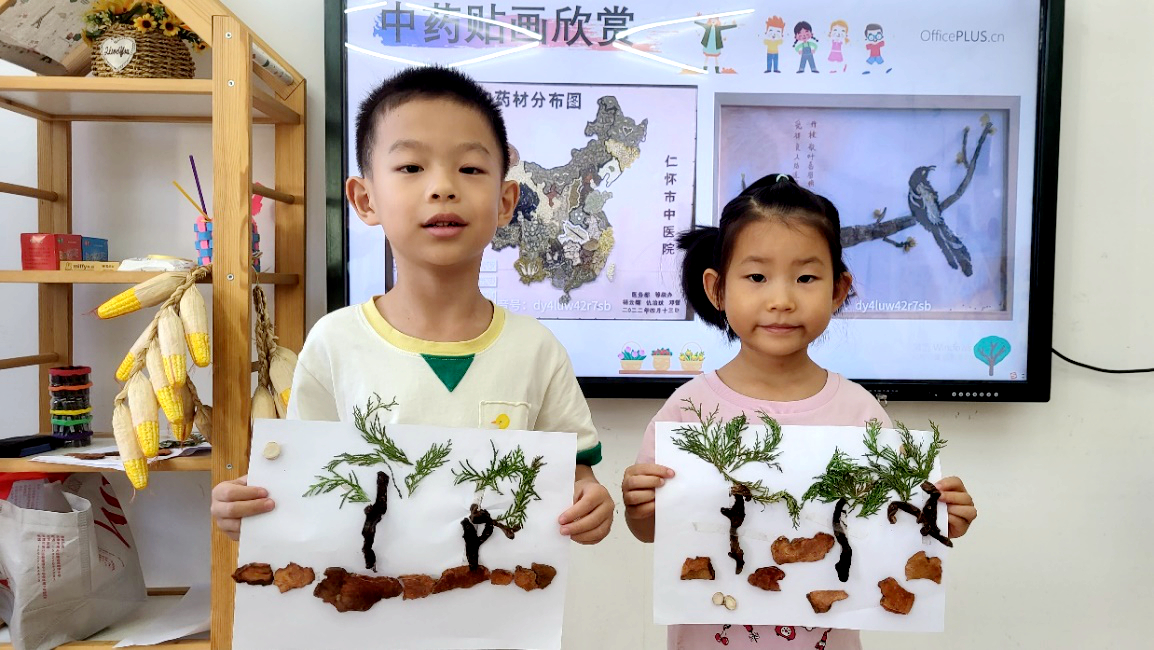 孩子们的中药贴画作品