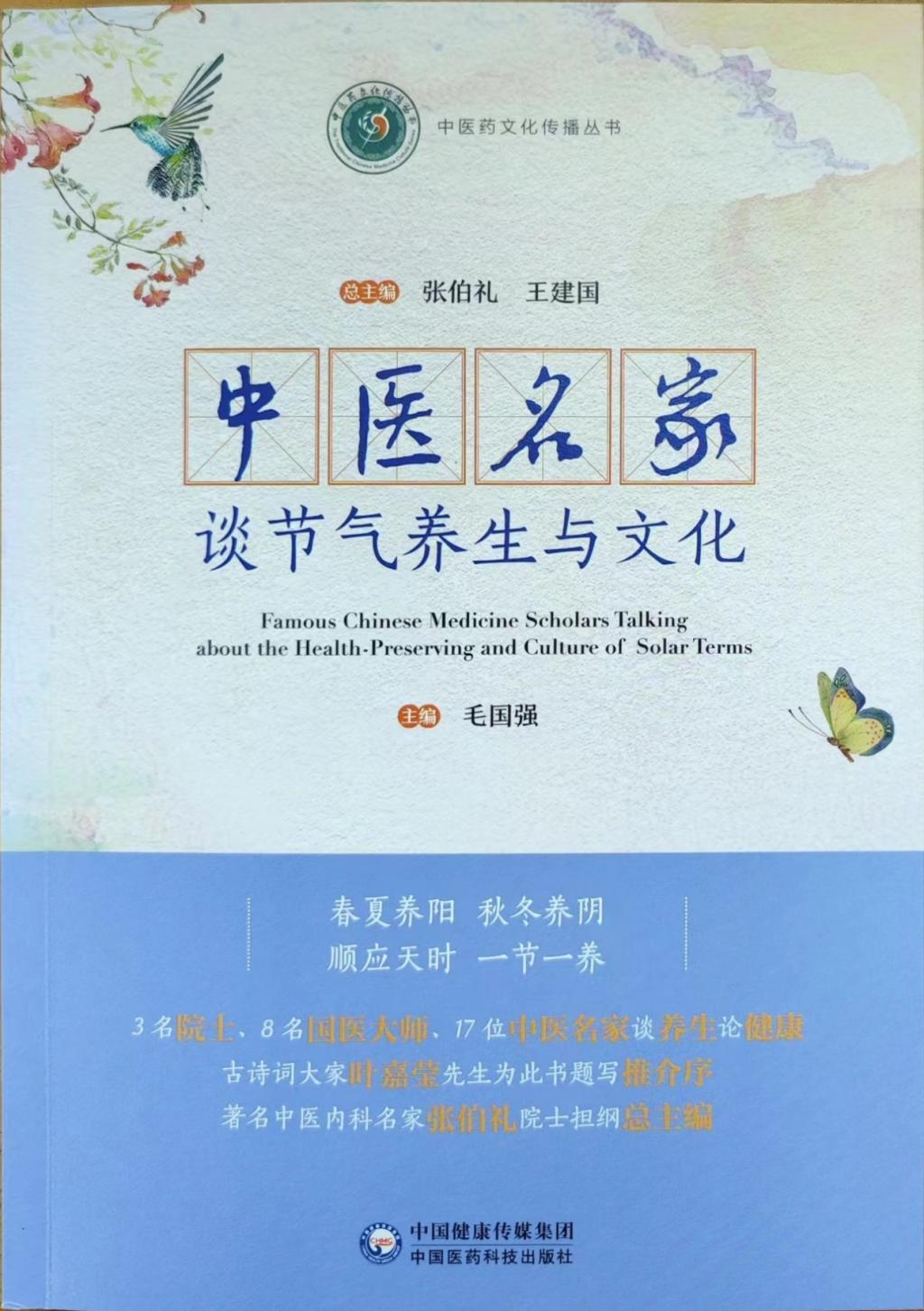 《中医名家谈节气养生与文化》是天津中医药大学中医药文化研究与传播中心团队编写的中医药文化传播丛书第一辑书籍之一。此书旨在弘扬中医养生与中华传统节气文化,从百姓熟识的节气入手,邀请24名全国知名院士、国医大师,名中医,采用专家家访谈形式,按照各名家的专业与自身养生经验,将中医养生理念以及相对应的24节气养生方法进行了深入浅出的介绍,并收入了节气相关的节气民俗、谚语、诗词,是对读者中医养生理论与方法的一次科学普及,同时读者又能欣赏到传统文化中优美的节气诗词,感受中国古人的民俗智慧,有助于提升读者的中医健康意识与文化素养。