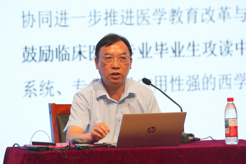 校党委书记刘革生书记致欢迎词。人民卫生出版社党委副书记、总经理李新华,天津市科学技术协会党组成员、副主席(正局级)罗进飞,天津市卫生健康委员会党委书记、主任王栩冬先后致辞。