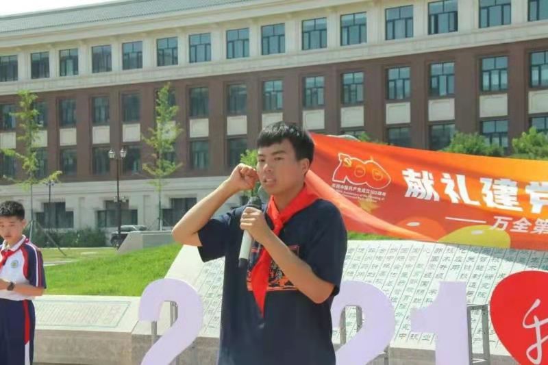 6月12日上午,在和平区万全第二小学马媛校长的带领下,100余名师生来到我校开展了“献礼建党百年路,争做时代好队员”主题活动。毛国强院长、白迪迪、耿晓娟两位老师、勇博励志班传播学2019级易兆全同学、20级汉语国际教育硕士的研究生同学参与了此次活动。