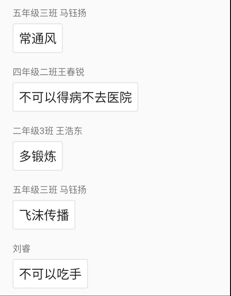 在大家的交流与讨论中,不知不觉就到了下课时间。小朋友们对两位小老师们表达了感谢与赞赏,这次网络授课,就在大家的再见声中结束了,但是这次课堂给小朋友们带来的感受与启发,将会影响着小朋友们生活中的健康观念与卫生习惯。