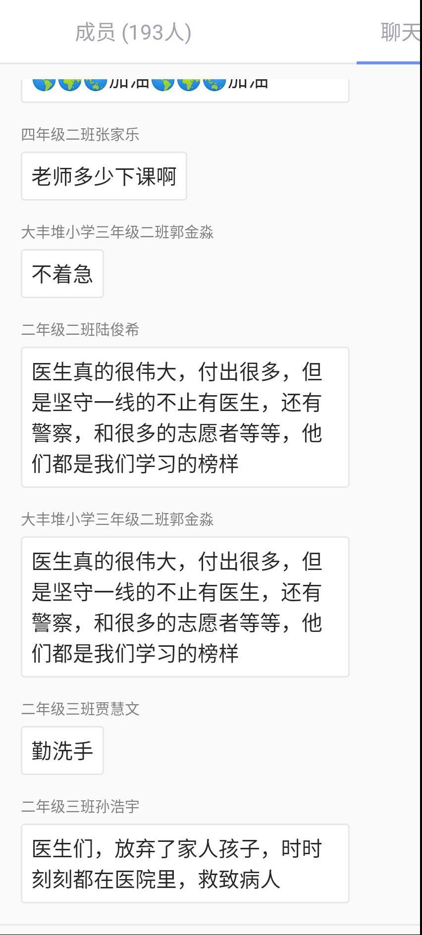 课堂的第一部分是由林彦宏同学为小朋友们讲述关于新型冠状病毒的科学知识和防控手段。她还讲述了疫情中医护人员的感人故事,如我校张伯礼校长在危急时刻逆行武汉,抱恙坚守抗疫一线,诠释医者仁心,挺起了中医药人的脊梁的先进事迹。她告诉小朋友们,正是因为有着像医护人员一样勇敢而又善良的人们,我们才能够在危险与困难之中有着安定的生活。小朋友们都发出了“武汉加油”“医生加油”“大家众志成城,共抗疫情”的感想。